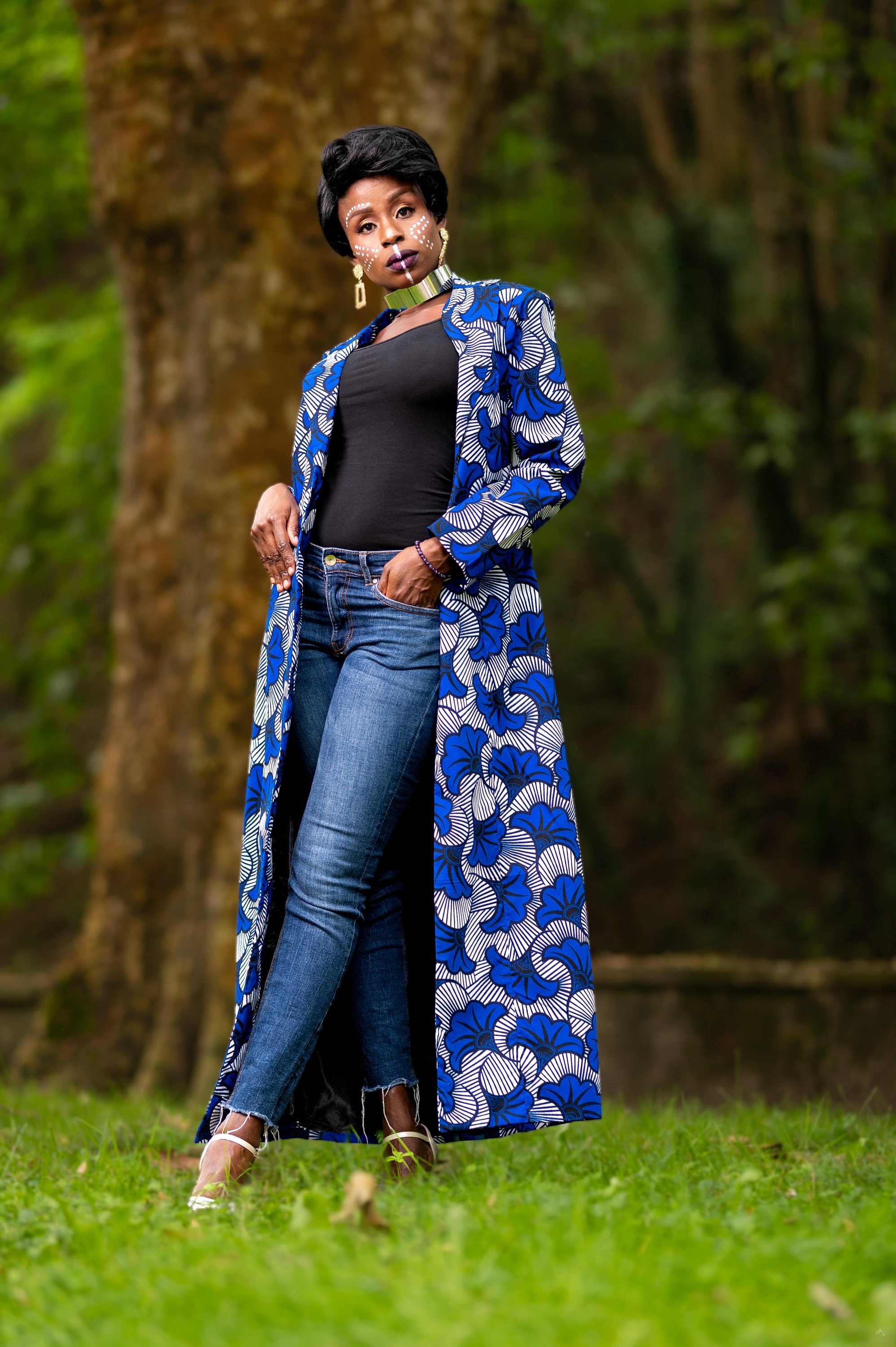 Un blazer en pagne porté sur un jean ou un pantalon sobre est parfait pour un style casual chic. C’est une façon d’affirmer son identité sans en faire trop.